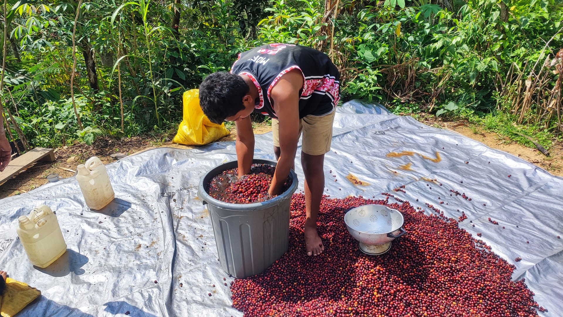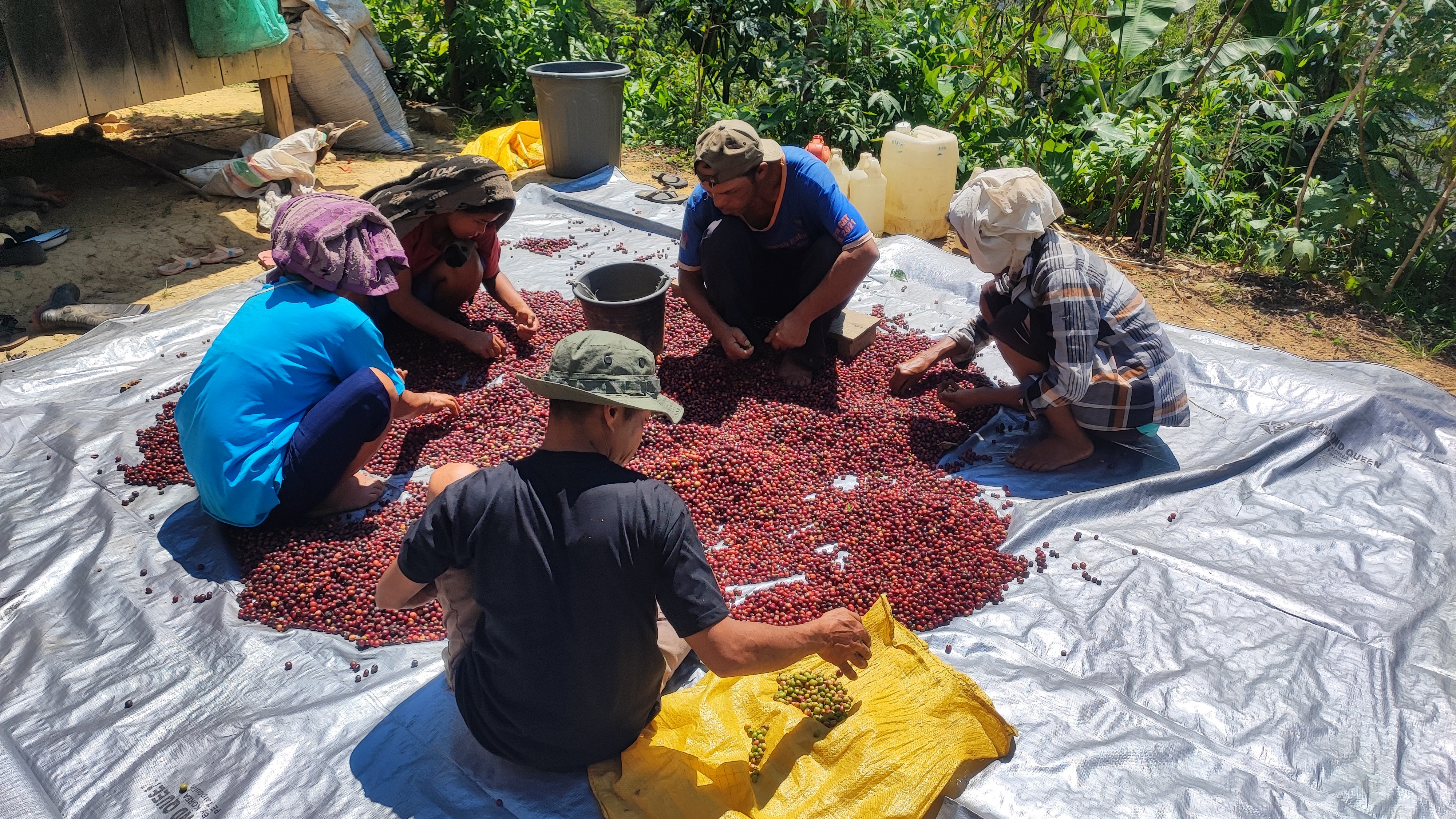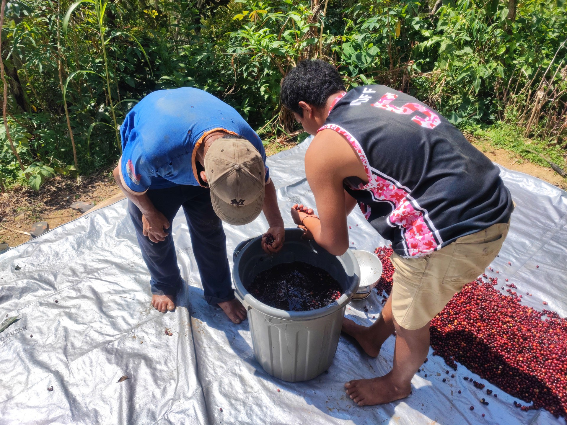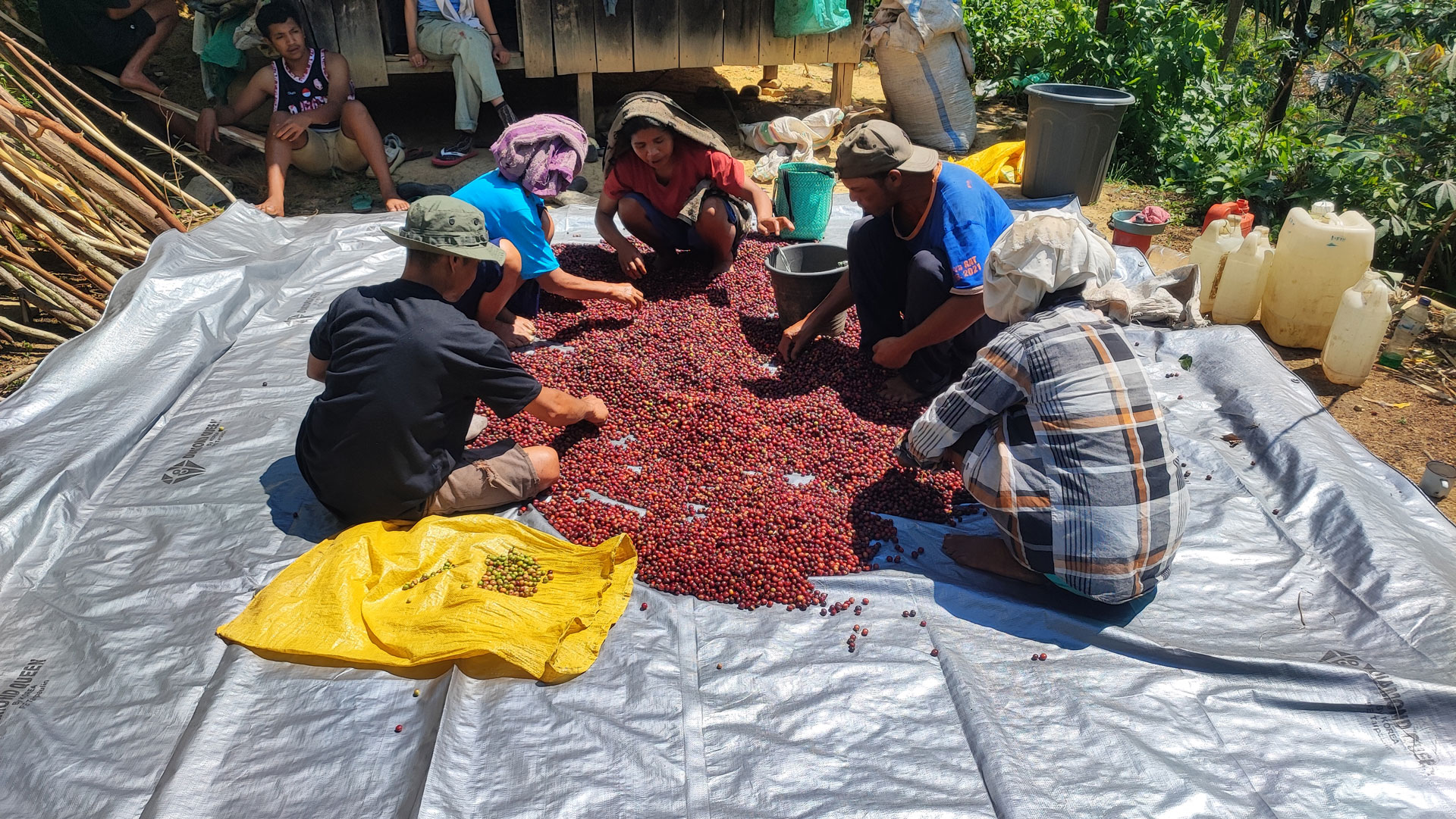 Zum Schluss werden die Kaffeebohnen auf einen Feuchtigkeitsgehalt von 11,0 bis 12,0 % getrocknet. Die Bauern verwenden dafür seit der Ernte 2024 Feuchtigkeitsmessgerät. Auch hier wird weiter sortiert. Die Bohnen werden dann in speziellen Plastiksäcken (GrainPro) verpackt, damit die Bohnen vor Feuchtigkeit und anderen äußeren Einflüssen geschützt sind.